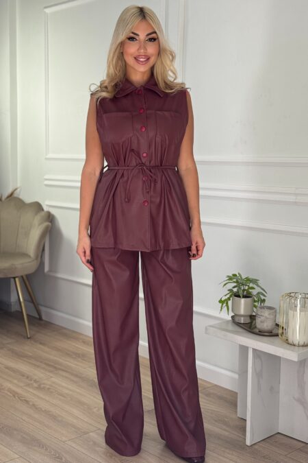 Δερμάτινο σετ αμάνικο γιλέκο και παντελόνι σε αποχρώσεις