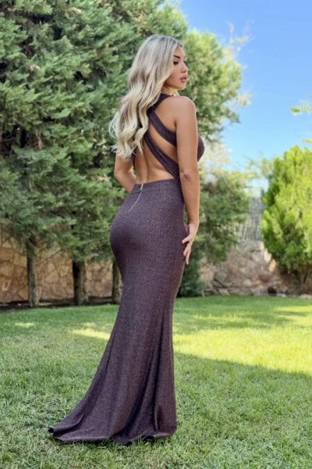 Μάξι σατέν φόρεμα με ανοιχτή πλάτη και ανοιχτό μπούστο. Διαθέτει φόδρα εσωτερικά, ρυθμιζόμενες και φερμουάρ στην πλάτη.
