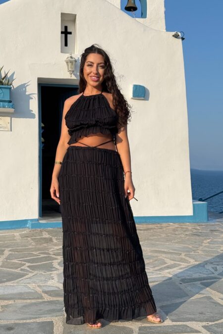 Ελαστικό σετ τοπ με μάξι φούστα. Διαθέτει ελαστική γραμμή. Ιδανικό να φορεθεί σε επίσημη περίσταση το καλοκαίρι για να εντυπωσιάσεις.