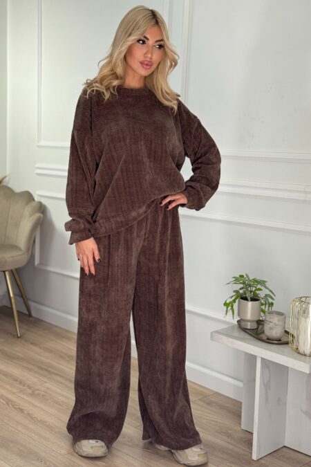 Βελούδινο στραφταλιζέ σετ παντελόνι και μπλούζα με τρούκς