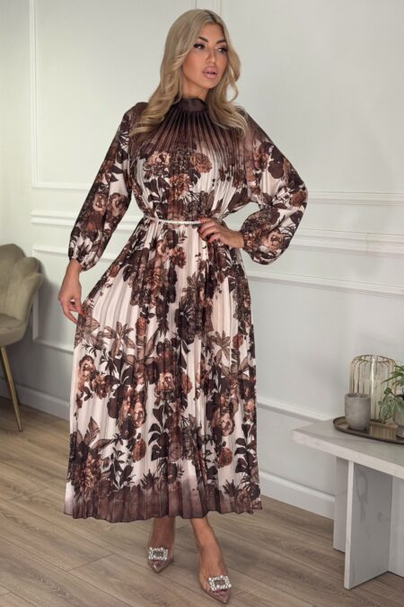 49.90€Original price was: 49.90€.39.90€Η τρέχουσα τιμή είναι: 39.90€. - 20%Maxi καφέ floral φόρεμα πλισέ στο κάτω μέρος . Αέρινο επίσημο φόρεμα ιδανικό για γάμο, βάπτιση ή βραδινή έξοδο. Διαθέτει λάστιχο στην μέση και αποσπώμενη ζώνη.