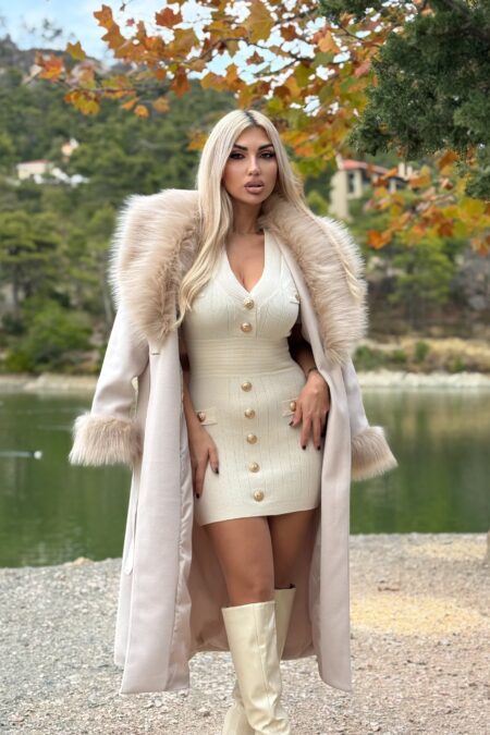 Μακρύ παλτό με γούνα στον γιακά και στα μανίκια