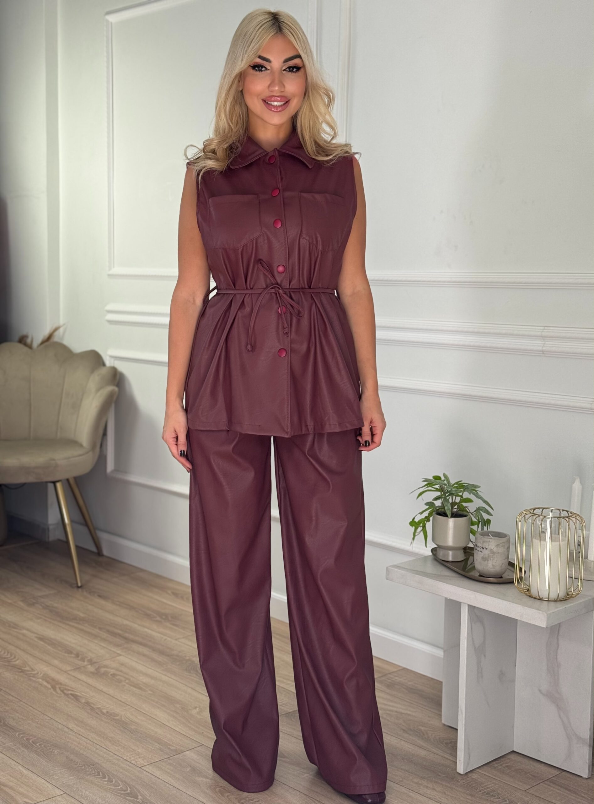 Δερμάτινο σετ αμάνικο γιλέκο και παντελόνι σε αποχρώσεις