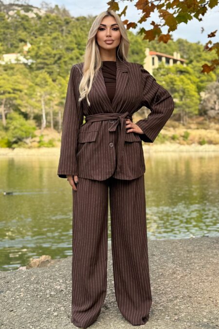 Ριγέ σετ κουστούμι με ζώνη σε χρώματα