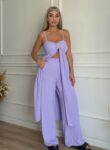 Υφασμάτινο σετ αμάνικο κουστούμι με ζώνη και κουμπί