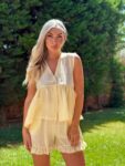 Διαθέτει ελαστική γραμμή. Το τοπ και η φούστα διαθέτουν φερμουάρ στο πίσω μέρος. Καλύπτει small medium large