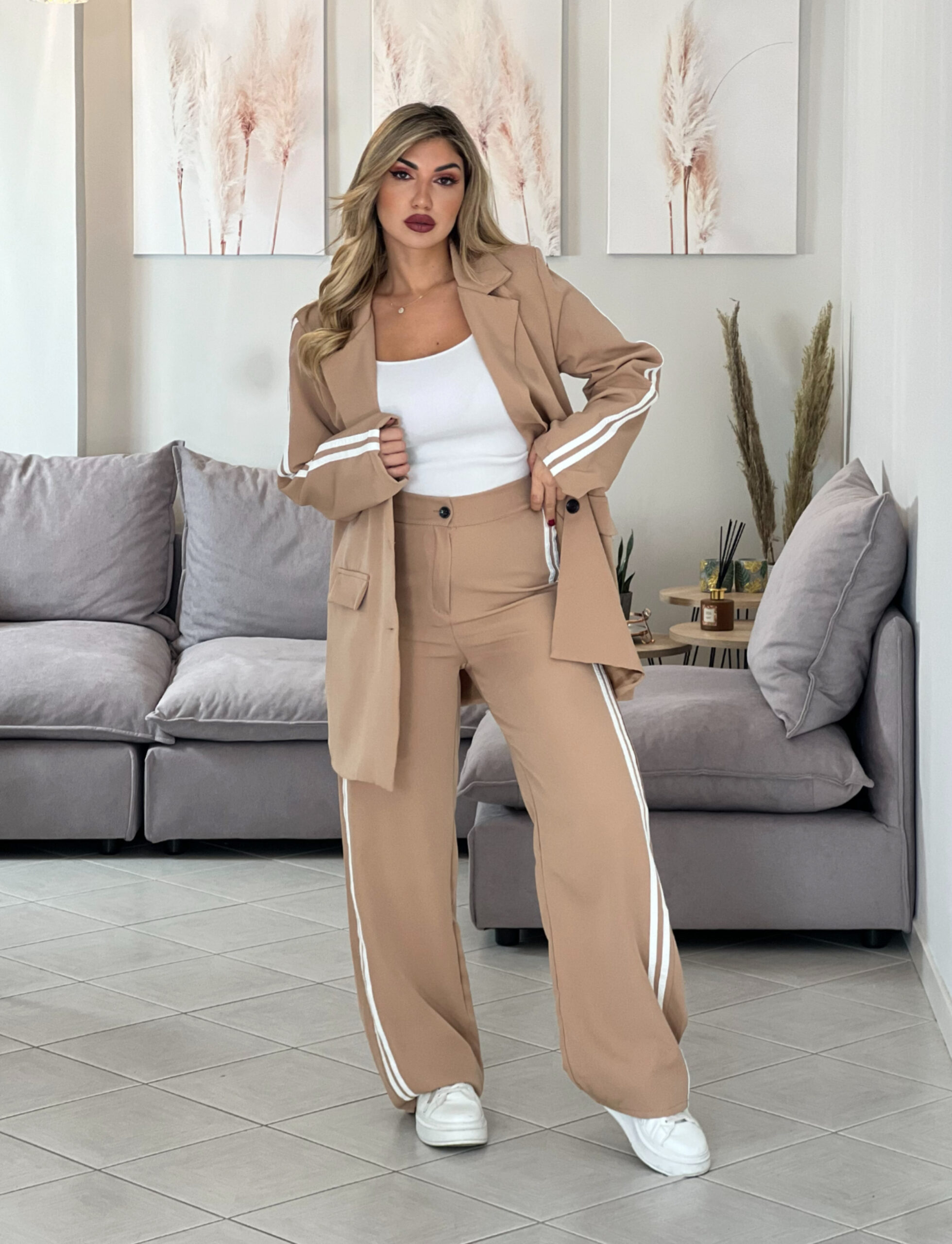 Σετ κουστούμι με λευκές ρίγες στο πλάι και παντελόνι oversized