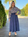 Σατέν maxi φούστα σε μπλε αποχρώσεις