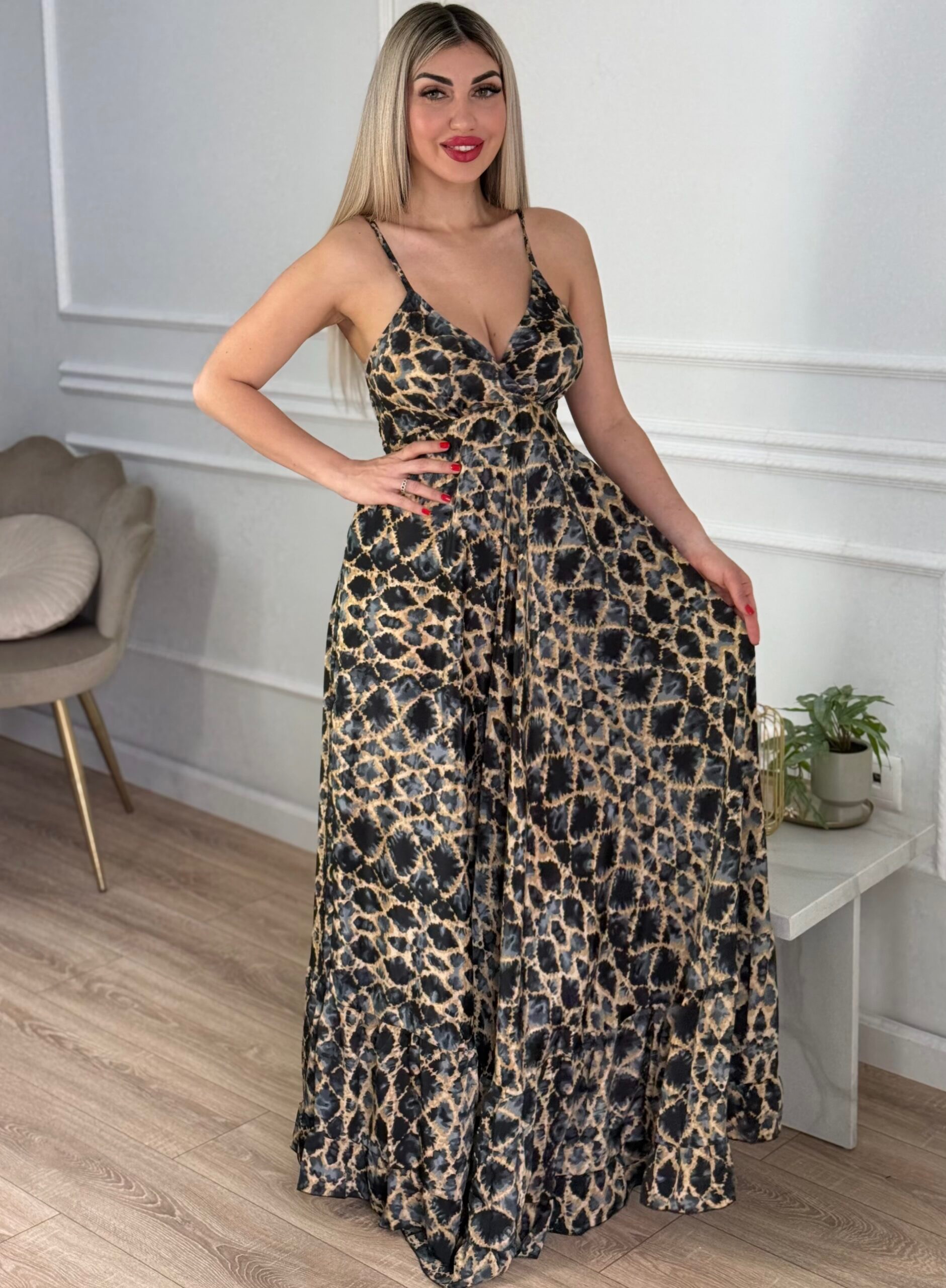 Αέρινο silk boho φόρεμα με μοτίβο σε αποχρώσεις. Ιδανικό για καλοκαιρινή βραδινή έξοδο. Διαθέτει ρυθμιζόμενες τιράντες και λάστιχο στο πίσω μέρος της πλάτης.