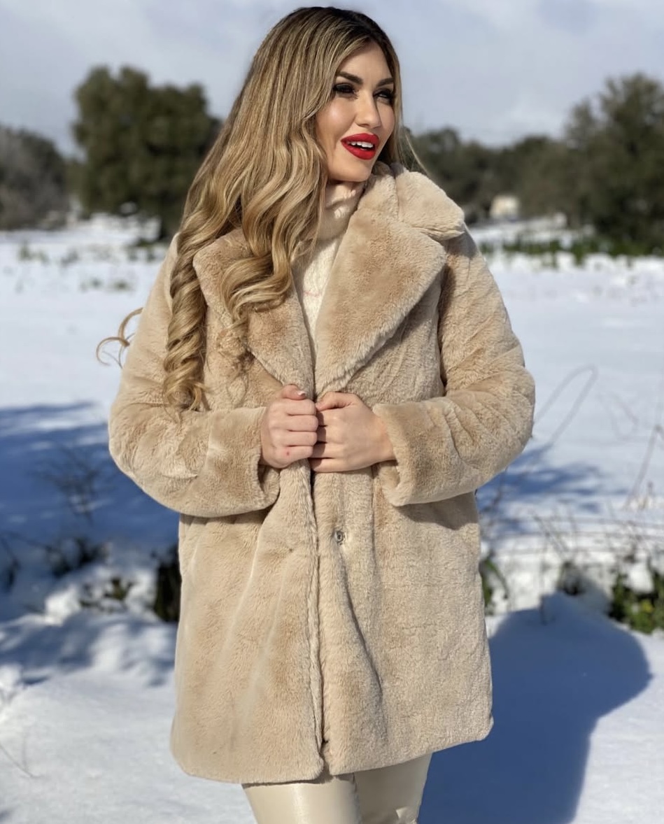Γούνα με γιακά και τσέπες caprice. Διαθέτει σταθερή γραμμή και σατέν φόδρα . Ιδανικό για να φορεθεί όλη μέρα.