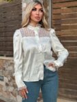 Σατέν εμπριμέ σετ πουκάμισο με πλισέ παντελόνι 69.90€