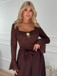 Καφέ δερματίνη παντελόνι με αποσπώμενη ζωνη