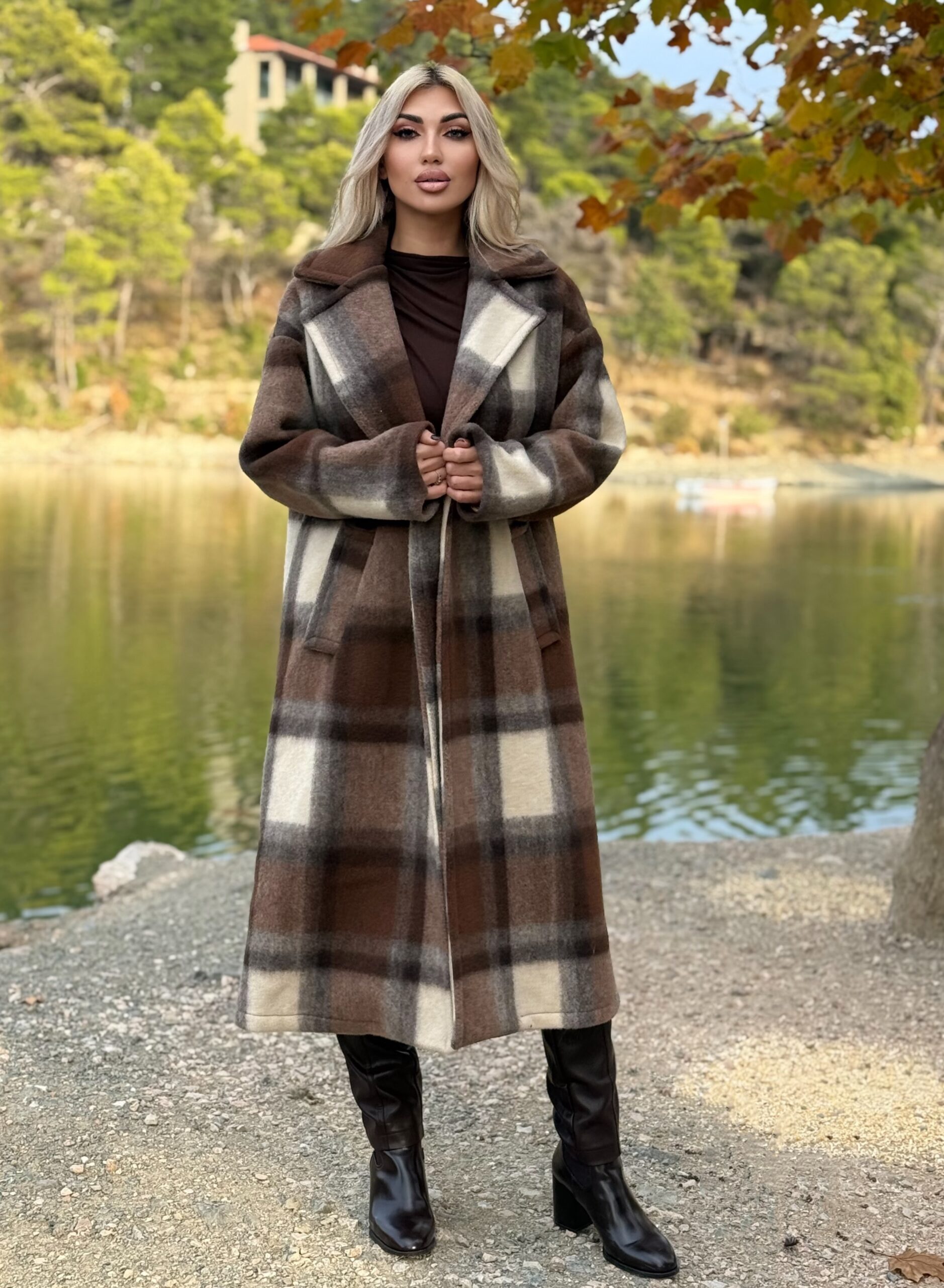 Μακρύ καρό παλτό. Διαθέτει φόδρα εσωτερικά, τσέπες και κουμπιά. Καλύπτει small, medium, large,xlarge