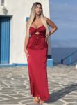 Μάξι κόκκινο ελαστικό φόρεμα και ανοιχτή πλάτη