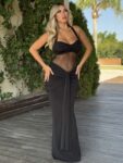 Μάξι μαύρο δαντελένιο φόρεμα με see through