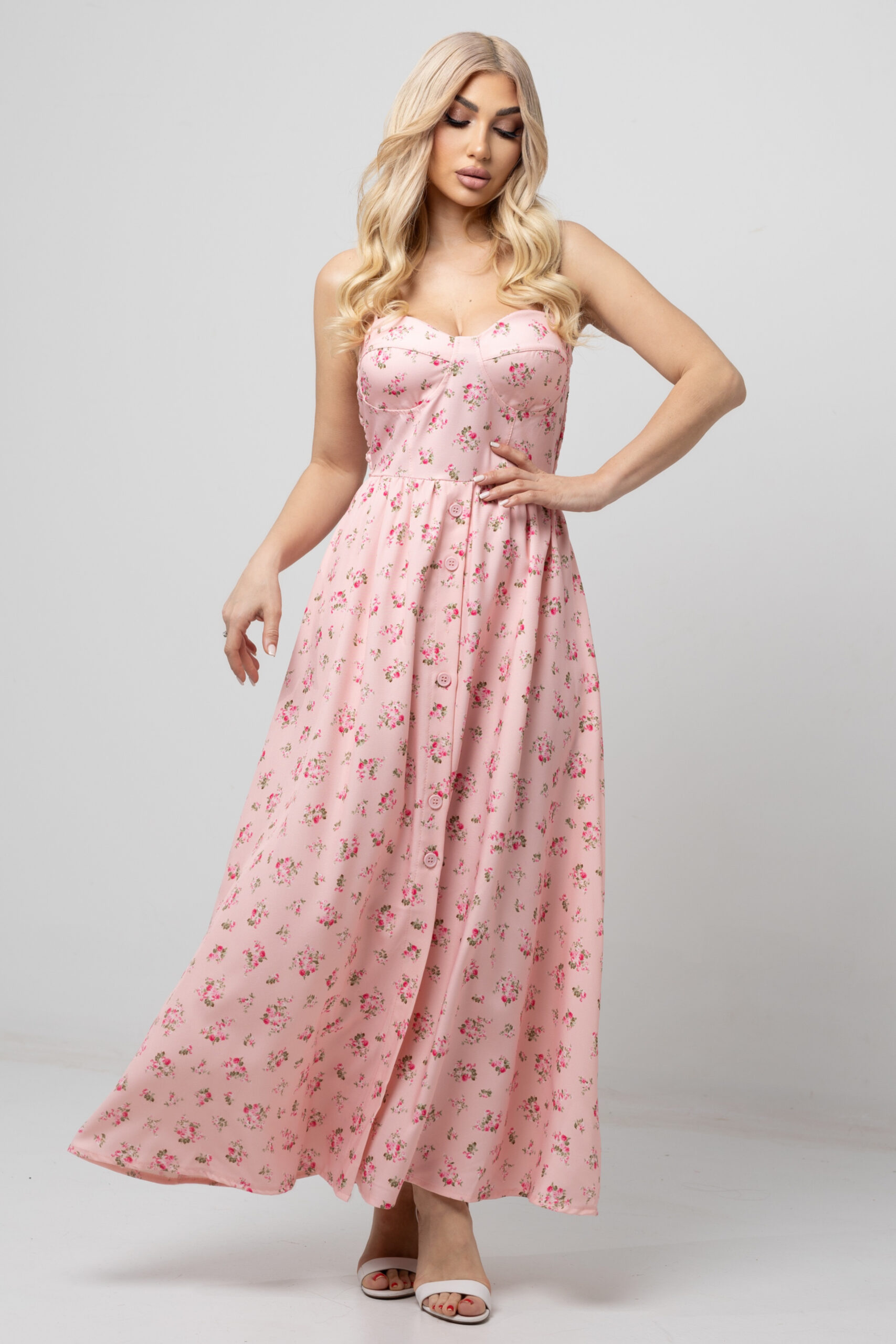 Midi floral φόρεμα αμάνικο με caps και λάστιχο πίσω