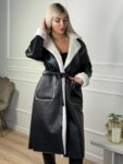 Παλτό δερματίνη με λευκή γούνινη επένδυση