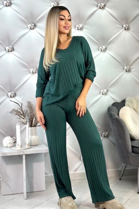 Σετ βισκόζη ελαστικό μπλούζα και παντελόνα με ανάγλυφη κάθετη ρίγα