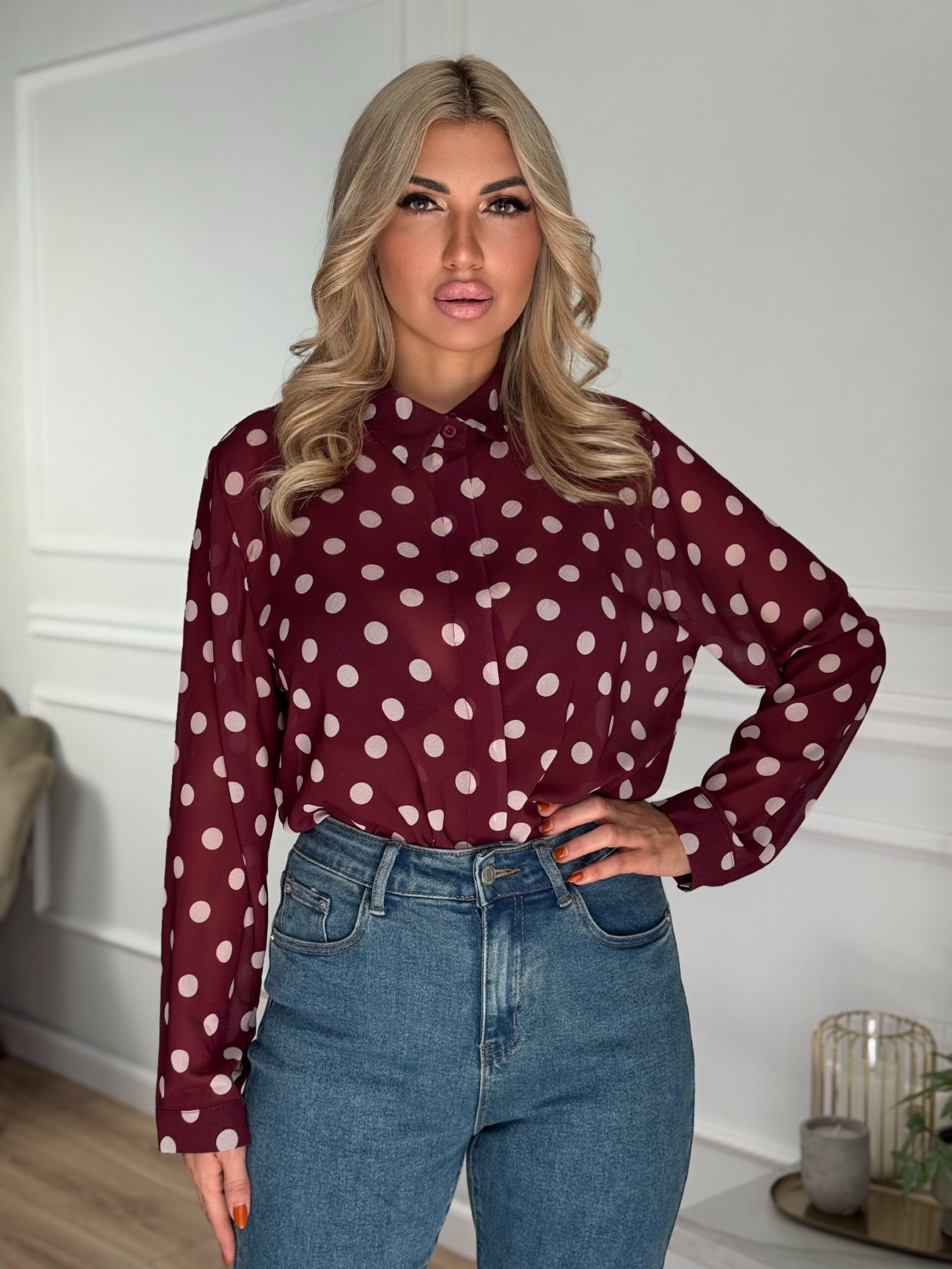 Πουά πουκάμισο τύπου μουσελίνα σε χρώματα. Διαθέτει άνετη γραμμή. Ιδανικό για να φορεθεί όλη μέρα και να χαρίσει άνεση και στυλ.