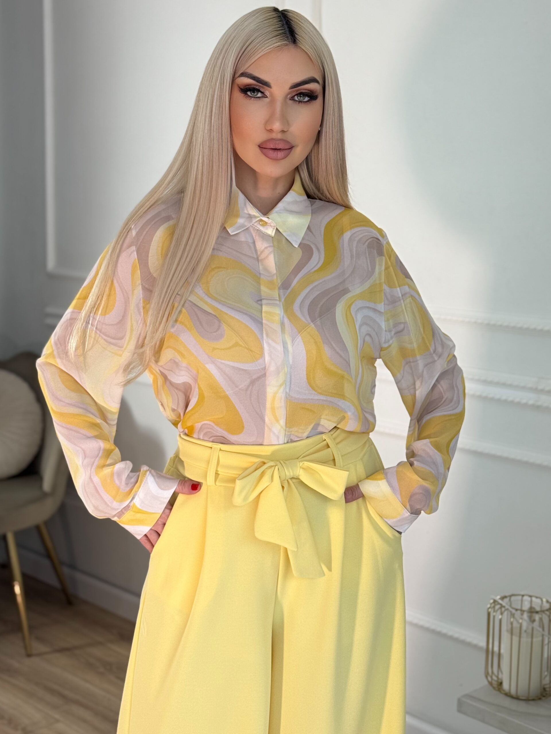 Πουκάμισο τύπου μουσελίνα με μοτίβο σε χρώματα. Διαθέτει άνετη γραμμή. Ιδανικό για να φορεθεί όλη μέρα και να χαρίσει άνεση και στυλ.