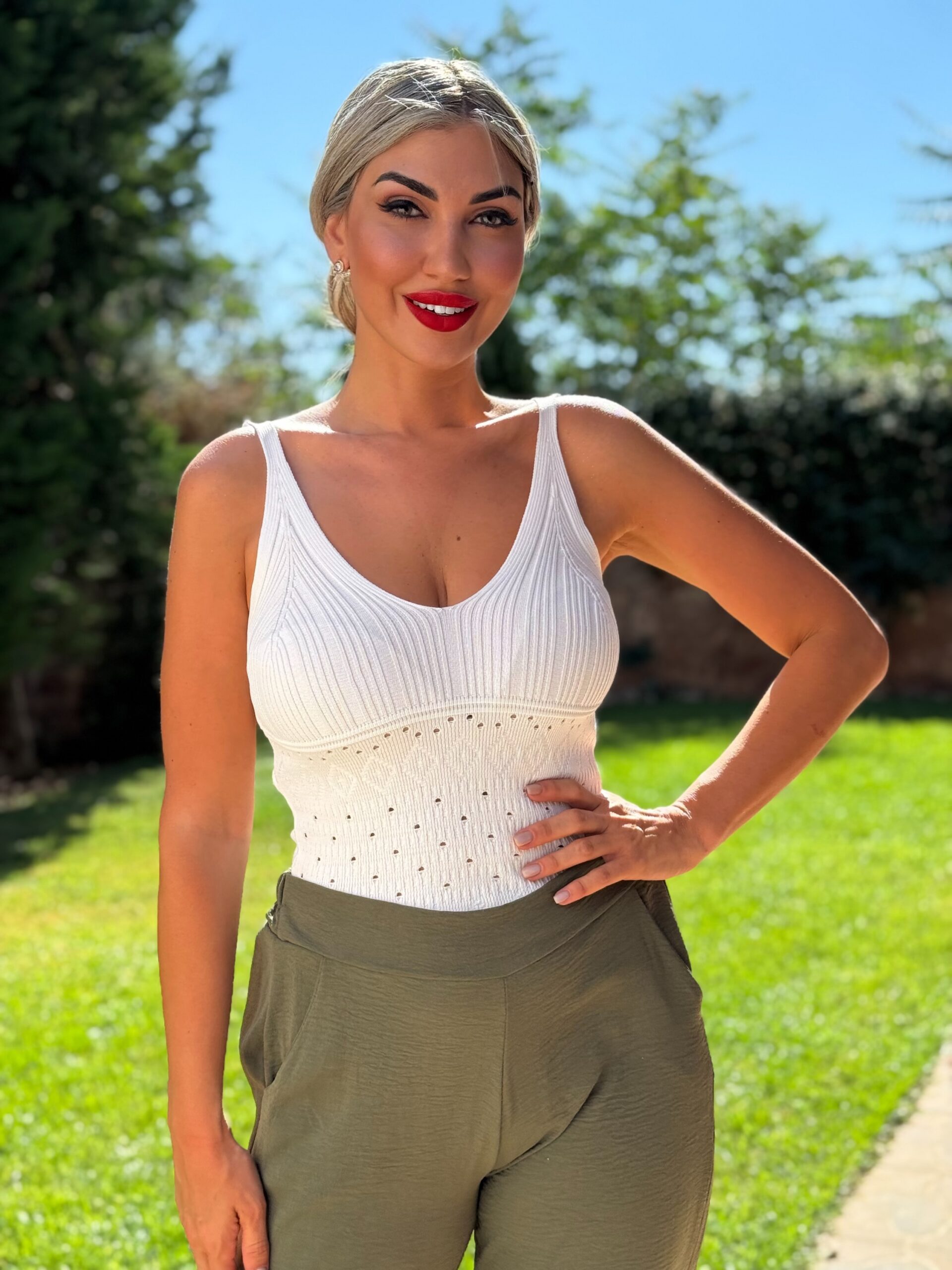 Ριπ αμάνικη μπλούζα με πλέξη. Διαθέτει ελαστική γραμμή. Ιδανικό για να προσφέρει άνεση και στυλ όλη μέρα.