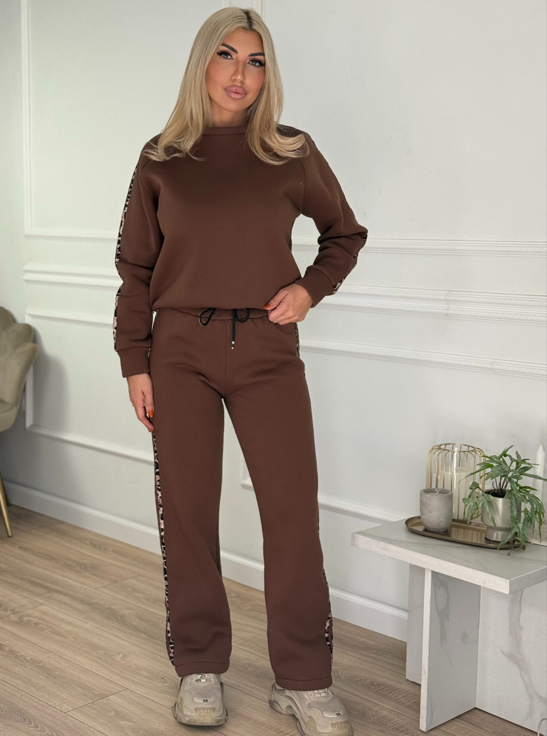 Σετ φόρμας μπλούζα με παντελόνι με animal print ρίγα . Διαθέτει άνετη γραμμή,φλις εσωτερικά και λάστιχο στην μέση. Ιδανικό για να χαρίσει άνεση και στυλ όλη μέρα.