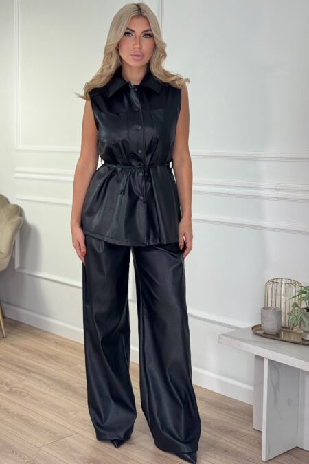 Υφασμάτινο σετ αμάνικο κουστούμι με ζώνη και κουμπί